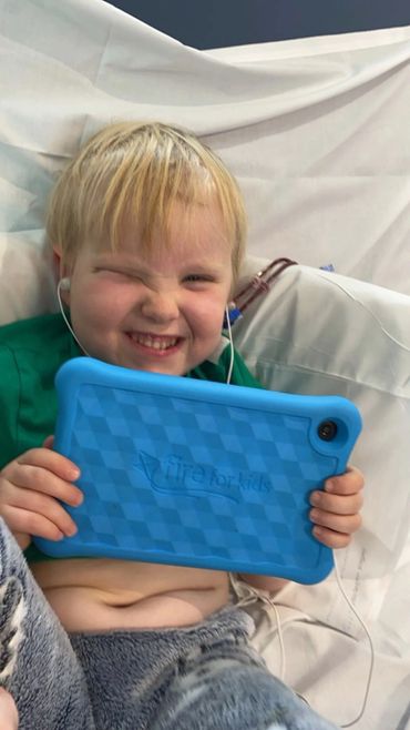 But within days, the side effects spiralled. He was in hospital with hydrocephalus. Meningitis twice over. He needed a shunt fitting. When he finally came home, he endured more treatment, daily radiotherapy for six weeks just as he started his first year at school. Larsen was so brave and so brilliant, he aced radiotherapy, managing without anaesthetic and he aced school as well. But the follow up MRI, whilst showing that the radiotherapy had worked, showed new tumours growing on the top of his spine.
