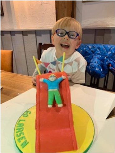 At just four and a half years old, Larsen endured 11-hour brain surgery and lost his right eye completely. We had to prepare him for the likelihood that he would wake up blind. Thankfully, he didn’t, and the surgery went as well as it could have, and a full resection was confirmed. We really thought he would be OK. We were elated; euphoric.